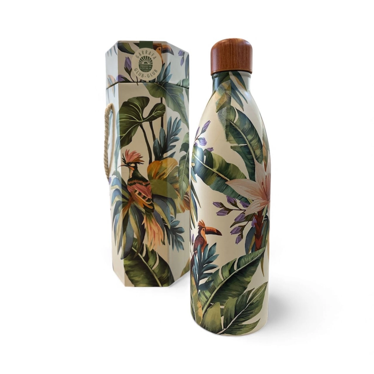 Garrafa Térmica GLUB-GLUB 1L com Estampa Tropical Bege e Tampa Madeira