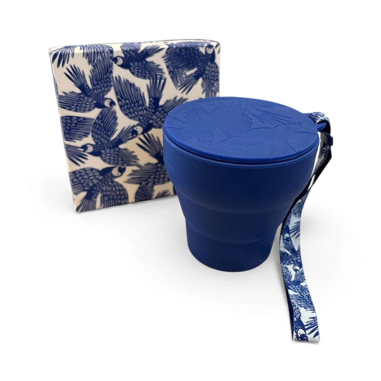 Copo Térmico VAI E VEM 300ml Dobrável Azul Estampa Araras – Portátil e Resistente