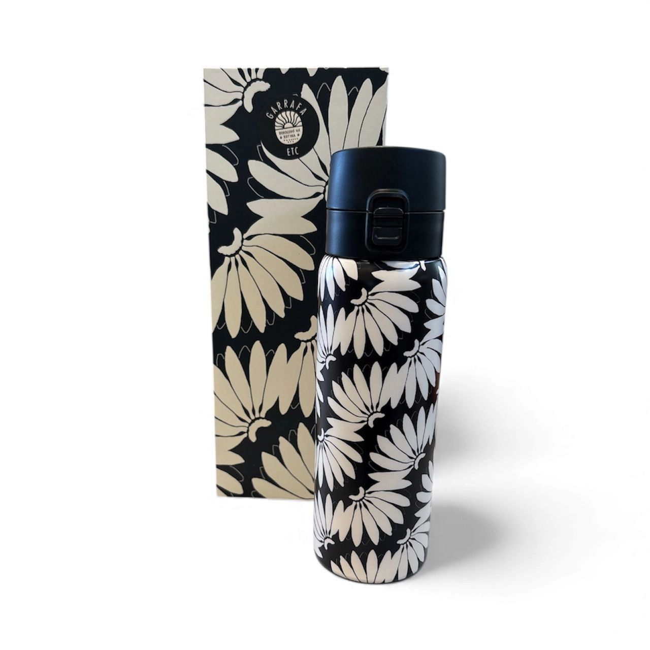 Garrafa Térmica ETC 650ml Estampa Floral Preto & Off-White – Aço Inox