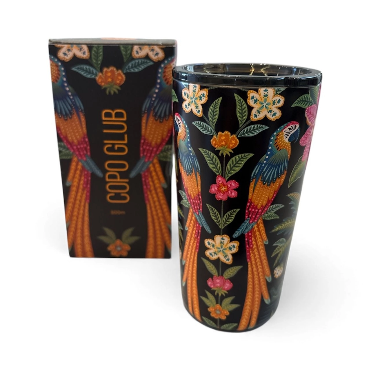 Copo Térmico GLUB 500ml – Estampa Araras & Flores, Parede Dupla, Mantém Bebidas Quentes e Frias